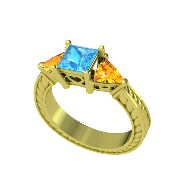 Akuamarin ve sitrin 14 ayar altın yüzük