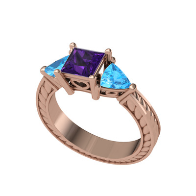 Ametist ve akuamarin 14 ayar rose altın yüzük