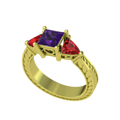 Ametist ve garnet 18 ayar altın yüzük