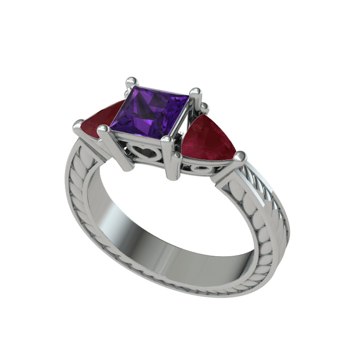 Ametist ve kök yakut 925 ayar gümüş yüzük