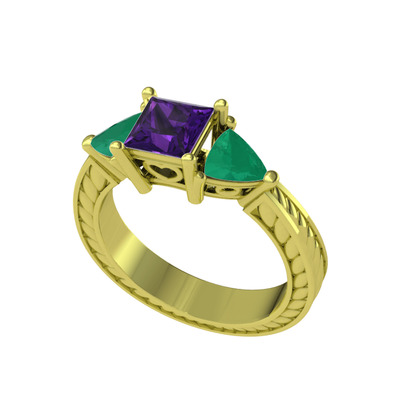 Ametist ve kök zümrüt 14 ayar altın yüzük