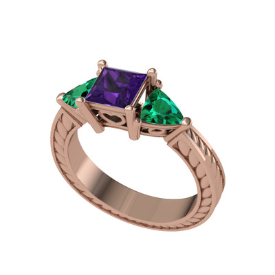 Ametist ve yeşil kuvars 14 ayar rose altın yüzük