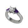 Beyaz zirkon ve ametist 925 ayar gümüş yüzük