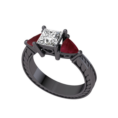 Beyaz zirkon ve kök yakut 925 ayar siyah rodyum kaplama gümüş yüzük