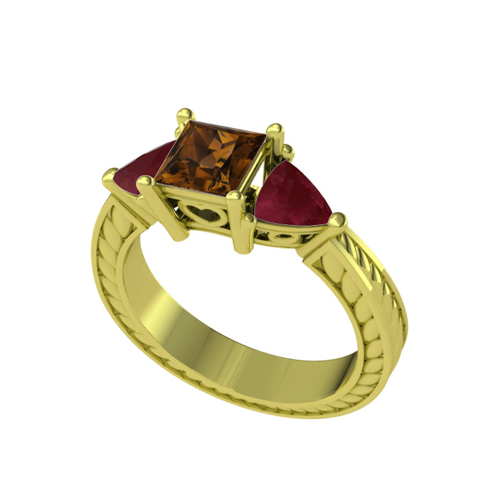 Dumanlı kuvars ve kök yakut 18 ayar altın yüzük