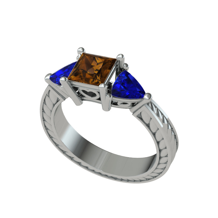 Dumanlı kuvars ve lab safir 8 ayar beyaz altın yüzük