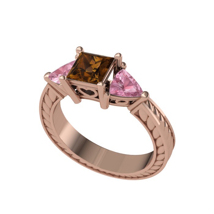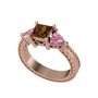 Dumanlı kuvars ve pembe kuvars 14 ayar rose altın yüzük