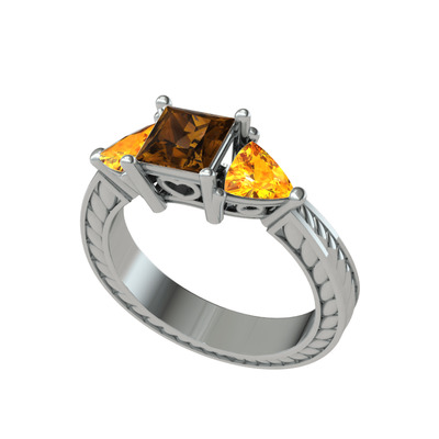 Dumanlı kuvars ve sitrin 18 ayar beyaz altın yüzük