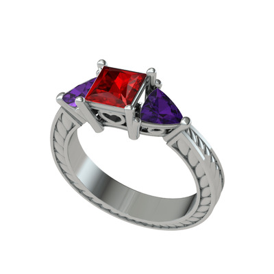 Garnet ve ametist 14 ayar beyaz altın yüzük