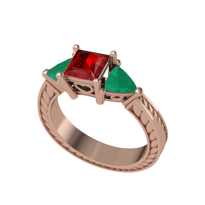 Garnet ve kök zümrüt 14 ayar rose altın yüzük