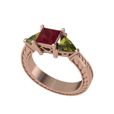Kök yakut ve peridot 14 ayar rose altın yüzük