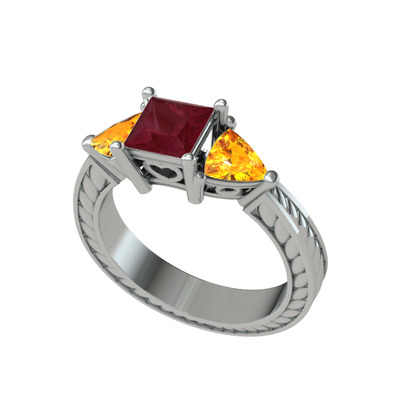 Kök yakut ve sitrin 8 ayar beyaz altın yüzük