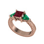 Kök yakut ve yeşil kuvars 8 ayar rose altın yüzük