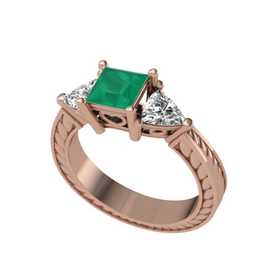 Kök zümrüt ve beyaz zirkon 14 ayar rose altın yüzük