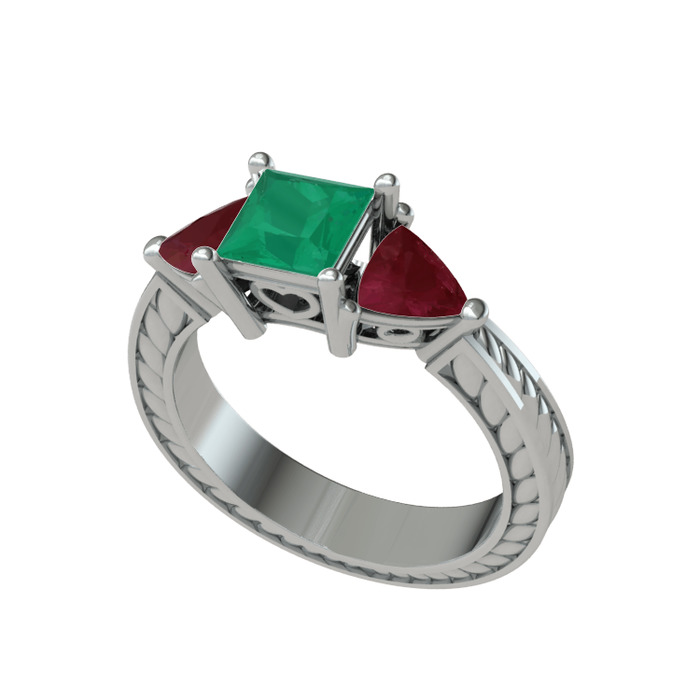 Kök zümrüt ve kök yakut 8 ayar beyaz altın yüzük