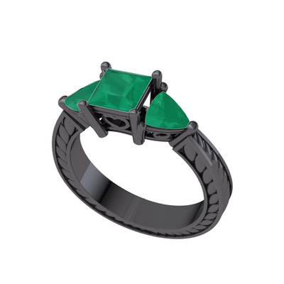 Kök zümrüt 925 ayar siyah rodyum kaplama gümüş yüzük