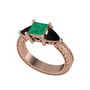 Kök zümrüt ve siyah zirkon 18 ayar rose altın yüzük