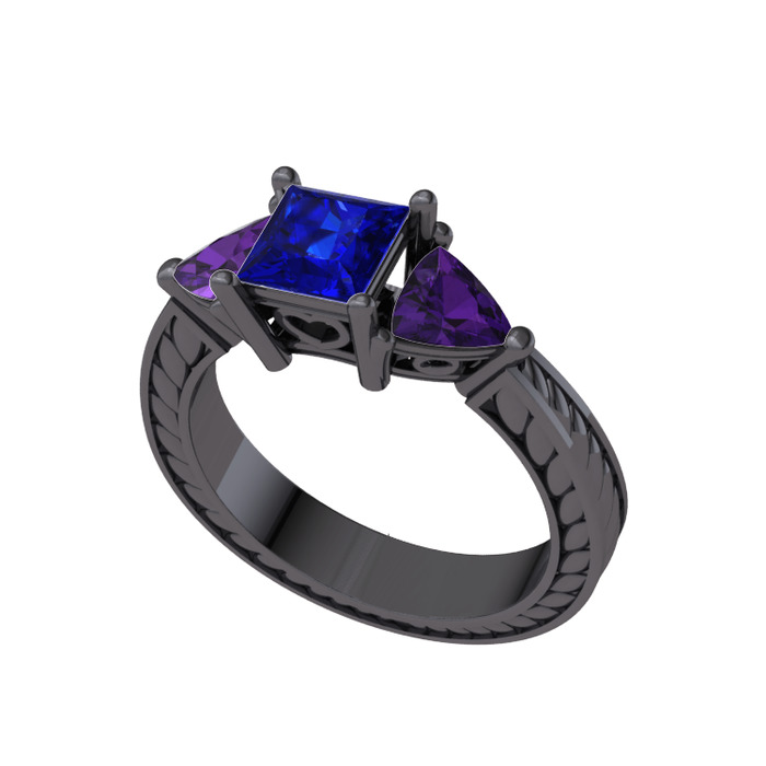 Lab safir ve ametist 925 ayar siyah rodyum kaplama gümüş yüzük