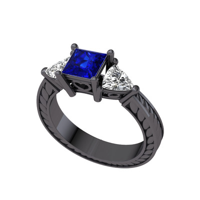 Lab safir ve beyaz zirkon 925 ayar siyah rodyum kaplama gümüş yüzük