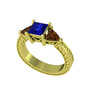 Lab safir ve dumanlı kuvars 925 ayar altın kaplama gümüş yüzük