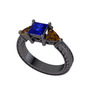 Lab safir ve dumanlı kuvars 925 ayar siyah rodyum kaplama gümüş yüzük