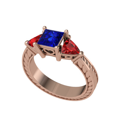 Lab safir ve garnet 14 ayar rose altın yüzük