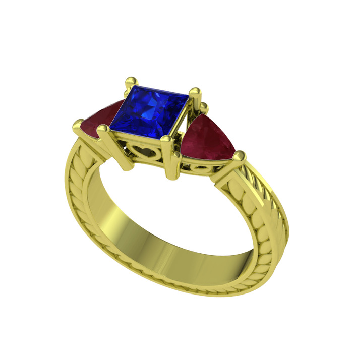 Lab safir ve kök yakut 925 ayar altın kaplama gümüş yüzük
