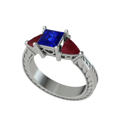 Lab safir ve kök yakut 925 ayar gümüş yüzük