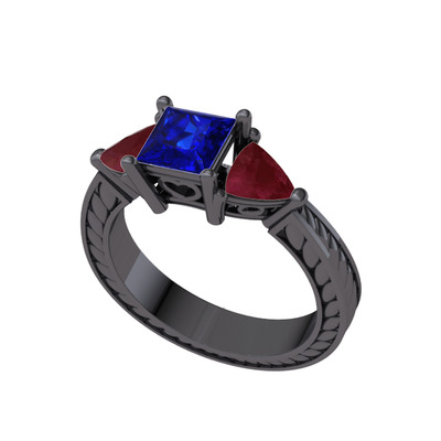 Lab safir ve kök yakut 925 ayar siyah rodyum kaplama gümüş yüzük