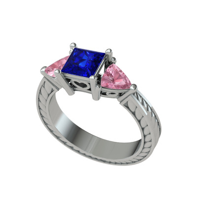 Lab safir ve pembe kuvars 8 ayar beyaz altın yüzük