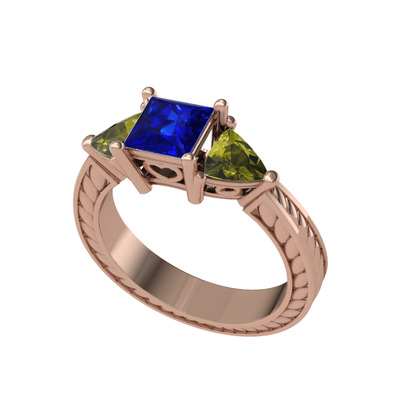 Lab safir ve peridot 925 ayar rose altın kaplama gümüş yüzük