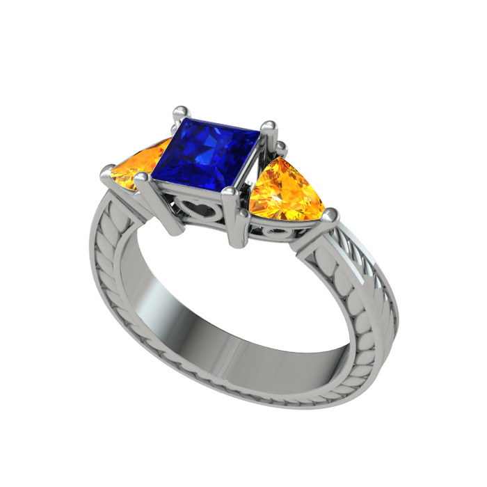 Lab safir ve sitrin 925 ayar gümüş yüzük