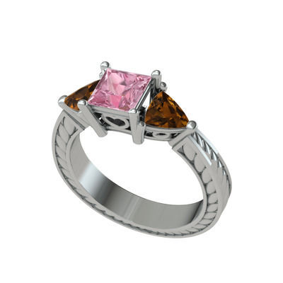 Pembe kuvars ve dumanlı kuvars 18 ayar beyaz altın yüzük