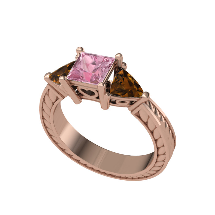 Pembe kuvars ve dumanlı kuvars 18 ayar rose altın yüzük