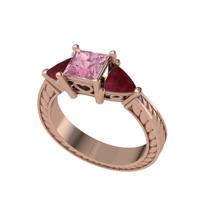 Pembe kuvars ve kök yakut 14 ayar rose altın yüzük