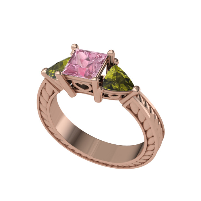 Pembe kuvars ve peridot 18 ayar rose altın yüzük