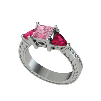Pembe kuvars ve rodolit garnet 18 ayar beyaz altın yüzük