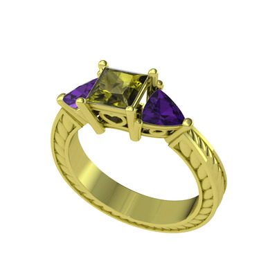 Peridot ve ametist 18 ayar altın yüzük