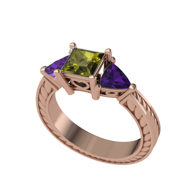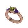 Peridot ve ametist 925 ayar rose altın kaplama gümüş yüzük