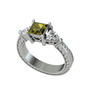Peridot ve beyaz zirkon 14 ayar beyaz altın yüzük