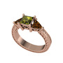 Peridot ve dumanlı kuvars 14 ayar rose altın yüzük