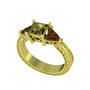Peridot ve dumanlı kuvars 8 ayar altın yüzük