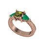 Peridot ve kök zümrüt 14 ayar rose altın yüzük