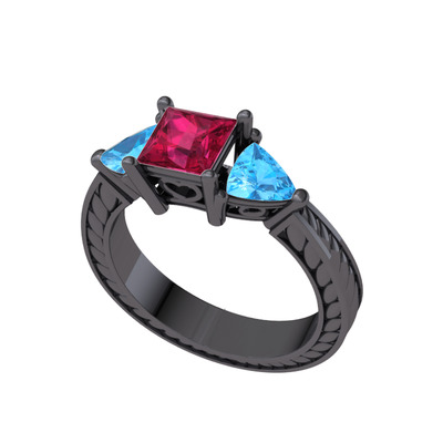 Rodolit garnet ve akuamarin 925 ayar siyah rodyum kaplama gümüş yüzük