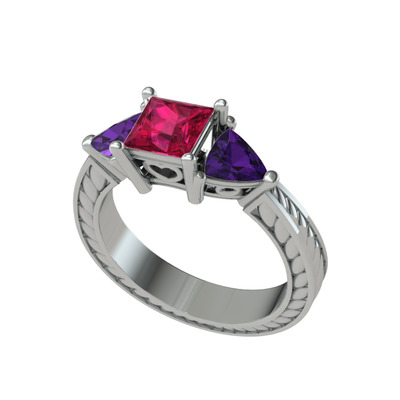 Rodolit garnet ve ametist 18 ayar beyaz altın yüzük