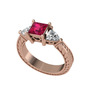 Rodolit garnet ve beyaz zirkon 14 ayar rose altın yüzük