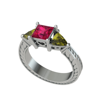 Rodolit garnet ve peridot 925 ayar gümüş yüzük