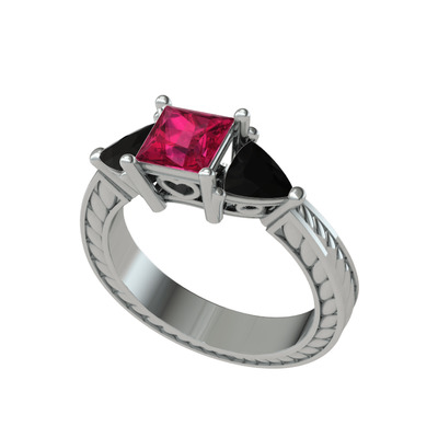 Rodolit garnet ve siyah zirkon 925 ayar gümüş yüzük