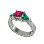 Rodolit garnet ve yeşil kuvars 18 ayar beyaz altın yüzük