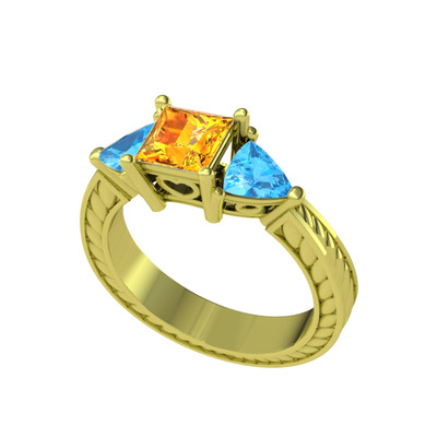 Sitrin ve akuamarin 8 ayar altın yüzük